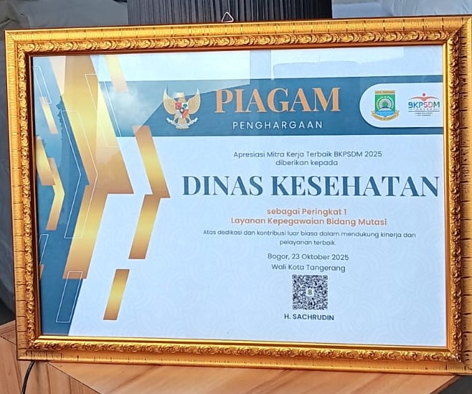Dinas Kesehatan Kota Tangerang Raih Penghargaan Mitra Kerja Terbaik Bidang Kepegawaian