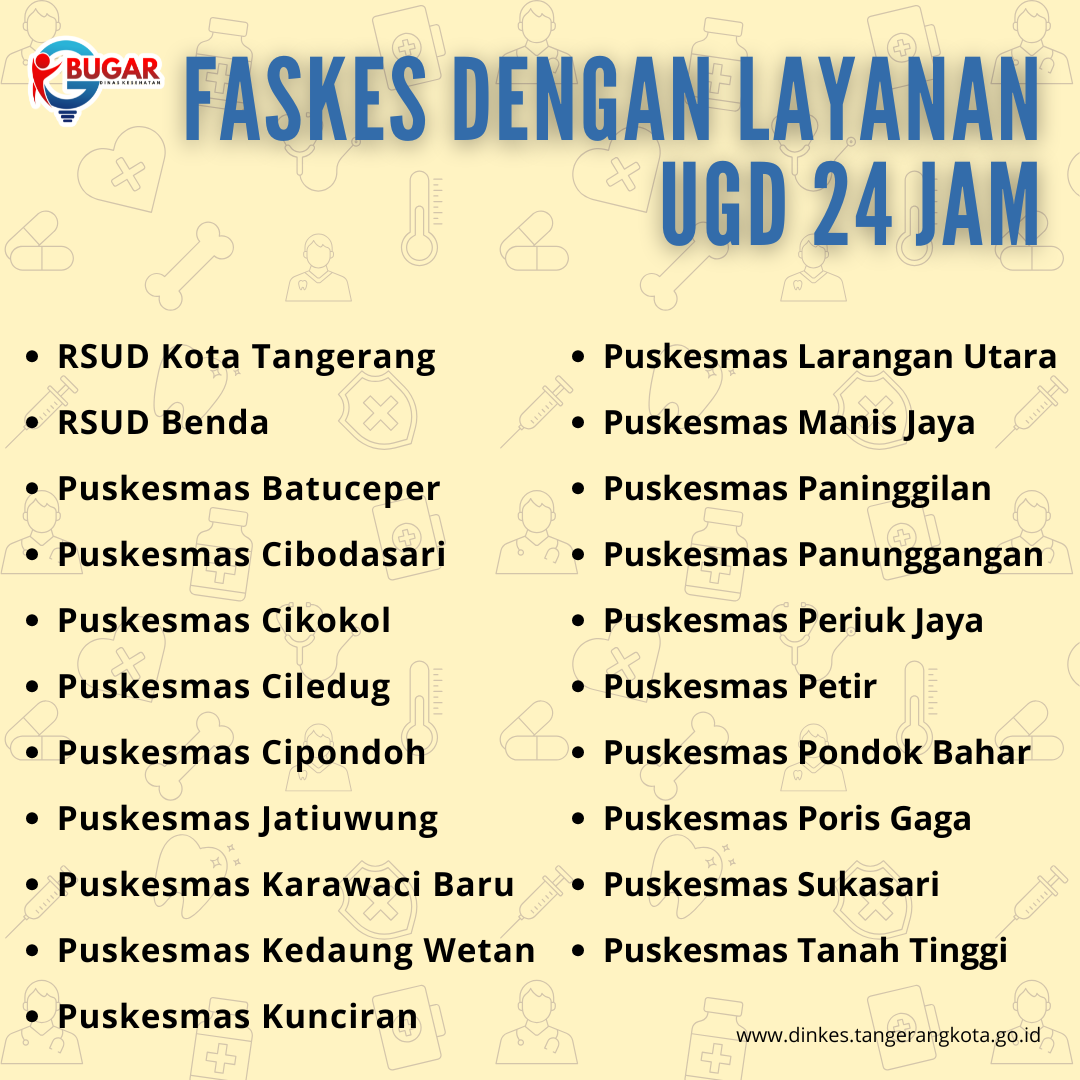menyediakan layanan UGD 24 jam antara lain RSUD Kota Tangerang, RSUD